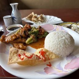 Start your culinary adventure with crispy fried wontons and classic egg rolls. Delve into the heartwarming flavors of our comforting wonton soup. Then, treat your taste buds to a delightful array of entrees, featuring tender almond chicken, tangy sweet and sour pork, and zesty lemon chicken. Accompanied by our delectable vegetable fried rice