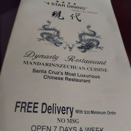 15 May 2024Best authentic Chinese restaurant in the Santa Cruz area! I've been living near Santa Cruz for 6 years and have tried the Chinese restaurants from Carmel/Monterey to Santa Cruz, and the Dynasty is by far the best. Delicious Wonton soup, they get the both the broth and the wontons right. Everything else I've ordered there is fantastic too. The prices are really reasonable, the place is authentically decorated and the staff is super agreeable. Take out is easy if there's no time to eat in.