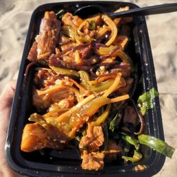 chicken stir-fried with colorful bell peppers, onions, and our special house sauce.